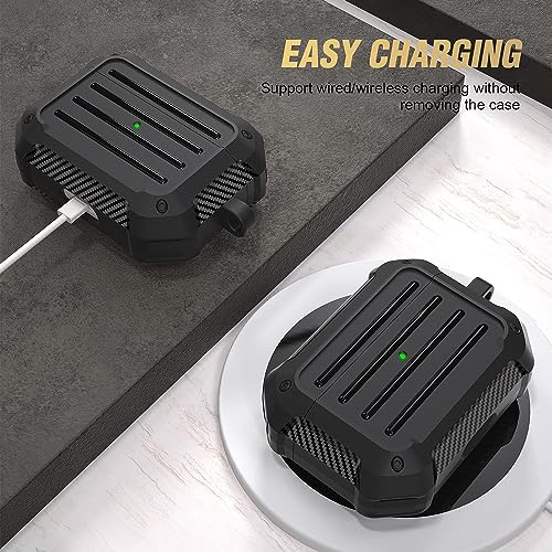 GIGA EG - جراب متوافق مع سماعات ايربودز برو مع سلسلة مفاتيح، جراب عسكري متين مقاوم للصدمات لكامل الجسم (ازرق)