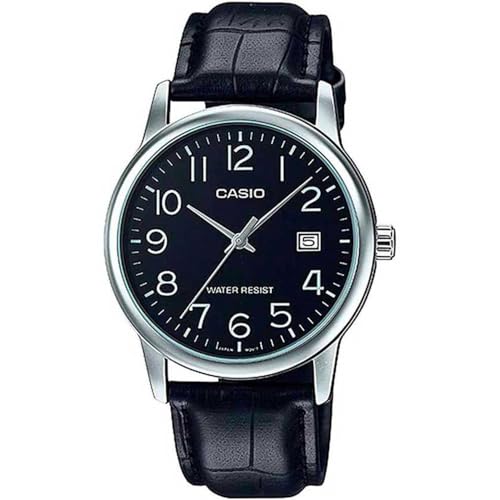 Casio - Casio Men's Black Dial Leather Band Watch - MTPV002L-1B