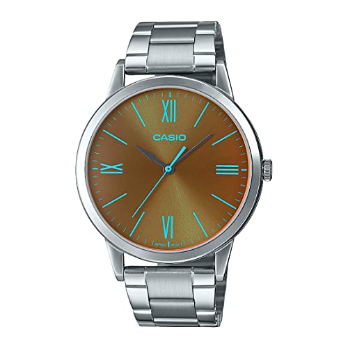 Casio - ساعة أنالوج بعقارب ومينا بني وسوار من الستانلس ستيل للرجال كاسيو MTP-E600D-1BDF.