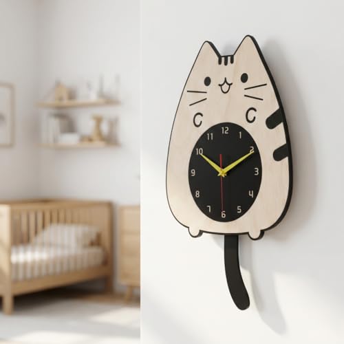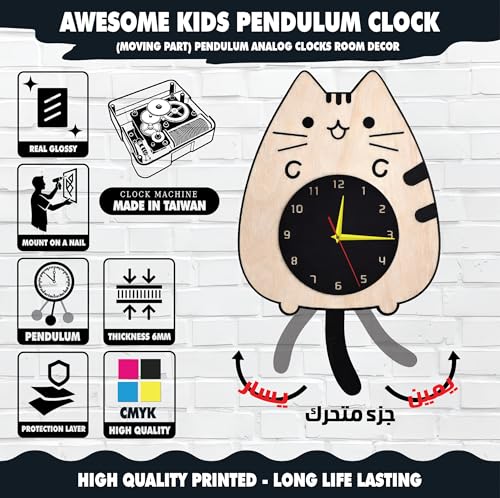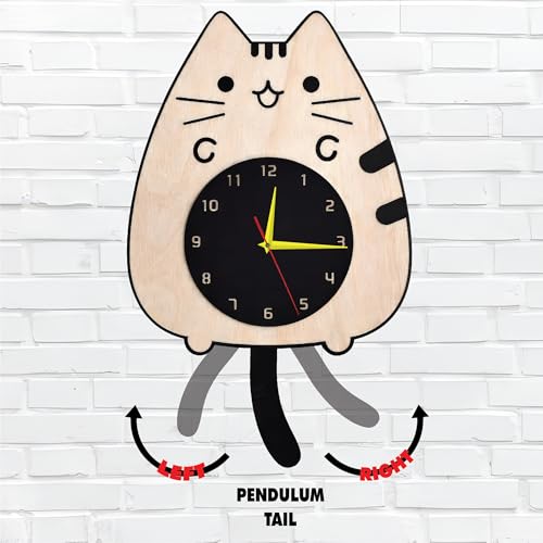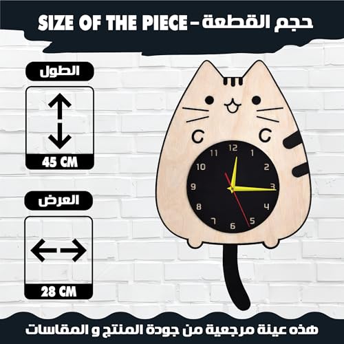 Generic - ساعة حائط ببندول متحرك بتصميم علي شكل قطة مع ذيل متحرك، ألوان زاهية وجودة عالية، حركة هادئة بدون صوت، سهلة التعليق، تضيف لمسة ديكور جذابة وتناسب جميع الأذواق