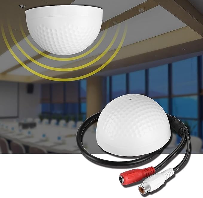 • CCTV Microphone System High Sensitivity Audio Pickup Device 12V Half Ball Design Audio Monitor Ceiling Mount Accessories White