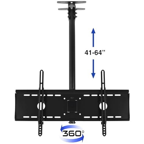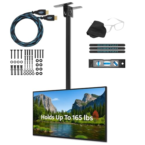 Cheetah - Cheetah APLCMB 360 Swivel Tilt TV Ceiling Mount for 32-75" TVs, Newer Displays up to 100", 165lbs, VESA 600, Extends 41-64" from Ceiling, Universal LCD LED Curved Flat Screen Tilting Mounting Bracket