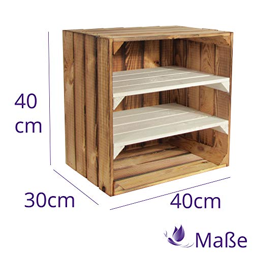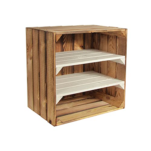 CHICCIE - Wino Wooden Wine Rack – Flamed White 2 x Shelves Wooden Box