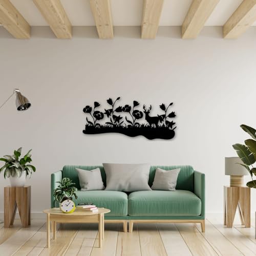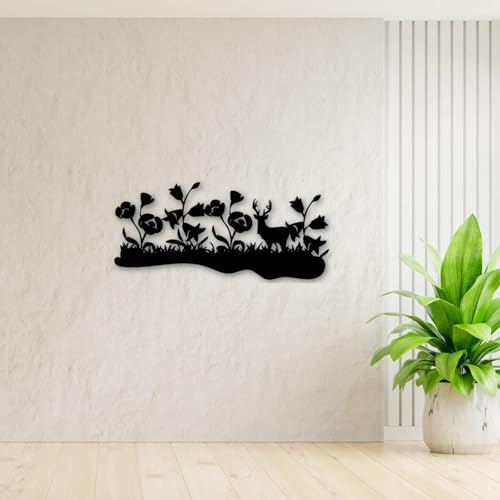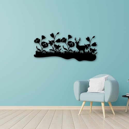 Generic - لوحة فنية جدارية من خشب ام دي اف بتصميم زهور للكريسماس - دير جاردن-جاردن-جاردن، لون اسود، ديكور بنمط الحديقة، متوفرة في 3 احجام - L 80×36 سم، M 60×27 سم، S 40×18 سم (L)