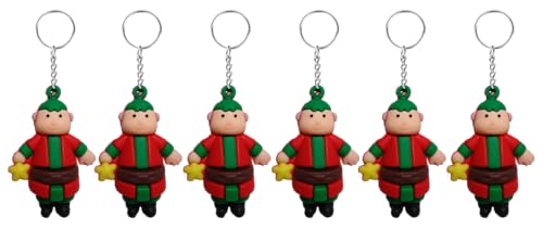 Generic - سلسلة مفاتيح بتصميم قزم الكريسماس، احمر واخضر، بنمط العطلات، اكسسوارات نجمة، 6 قطع زعانف