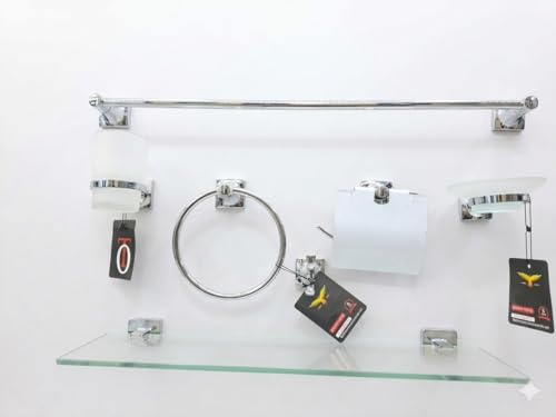Generic - Chrome Bathroom Accessories Set, Includes Glass Shelf, Towel Ring, Paper Holder and Soap Holder
