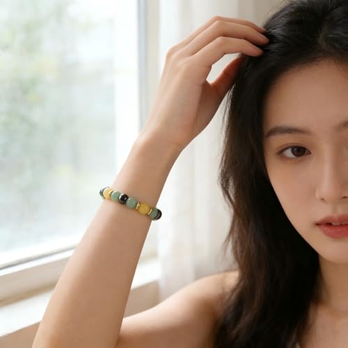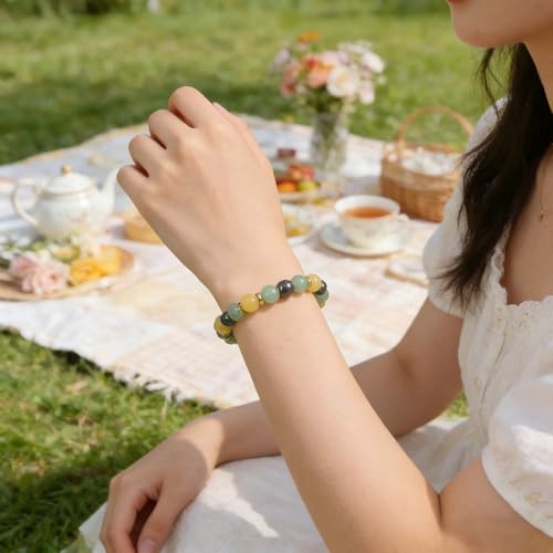 CIUOSUN - Wealth Crystal Healing Bracelet, 4 Gemstones with Citrine, Aventurine, Pyrite, Hematite, 7.8 inch