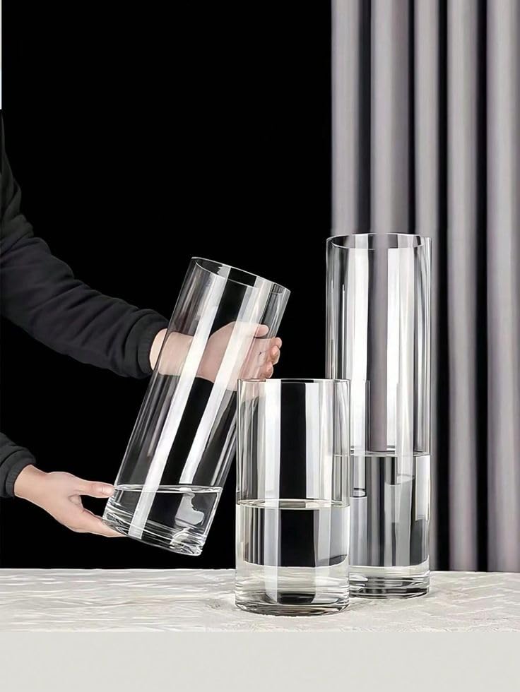 Generic - Clear Cylinder Glass Vase Set, 3 Pieces Multiple Sizes for Flowers and Home Decor, Simple Modern Design
