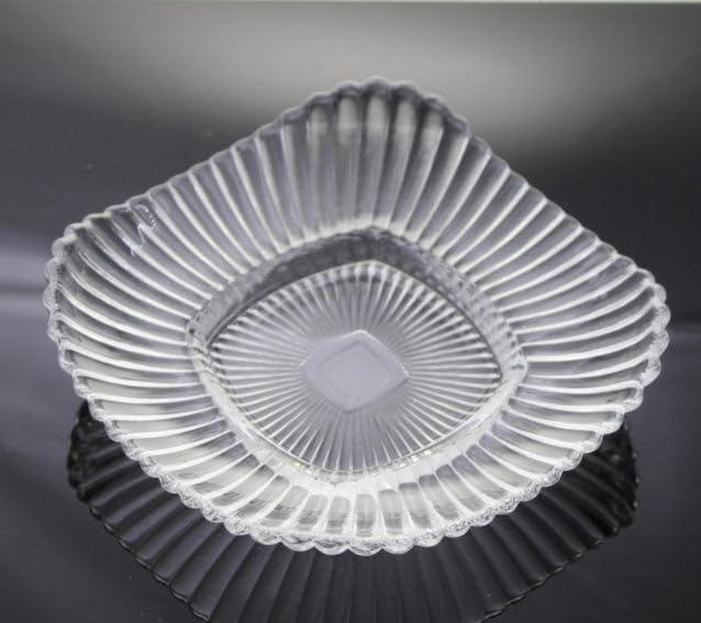 Generic - Clear Glass Ribbed Serving Plate, Square Shape, Scalloped Edge, Transparent Finish SET OF 2 16CM
