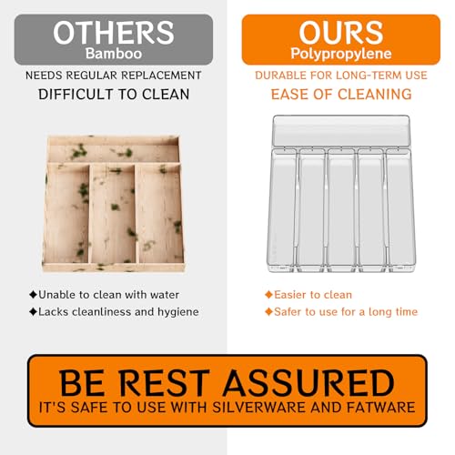 - 【منظم أدوات مائدة من مادة بي اي تي عالية الجودة والخالية من مادة البيسفينول أ】صينية أدوات المائدة الخاصة بنا مصنوعة من مادة بلاستيكية عالية الجودة، والتي تتجنب بفعالية مشاكل مثل العفن أو الصدأ. (يرجى تجنب استخدام الخيزران أو المواد الخشبية لحماية الصحة بفعالية).