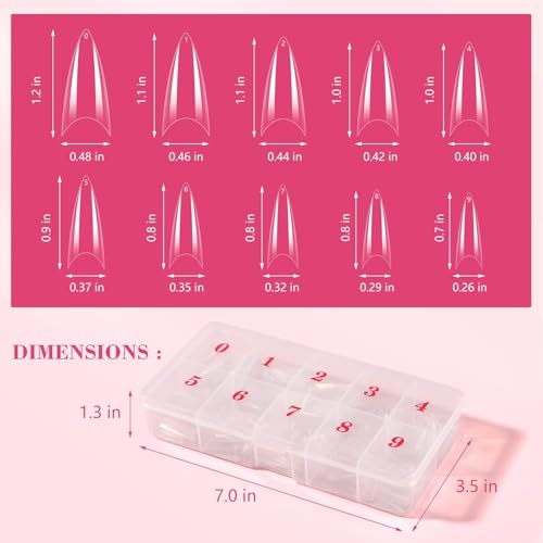 - Mixed Size–240 pcs artificial nails tips offer 10 different sizeswhich is pre-numbered 0-9(100pcs for numbers 5 and 6 50pcs for other numbers) which fits most fingers and meet various needs