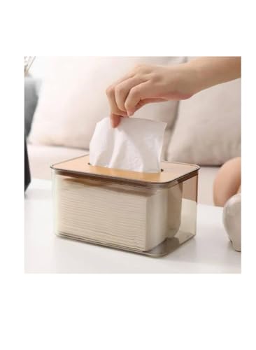 generic - حامل علبة مناديل شفاف مع غطاء، صندوق توزيع مناديل اكريليك مستطيل مع غطاء من الخيزران للحمام وغرفة المعيشة، رمادي شفاف