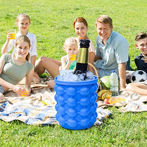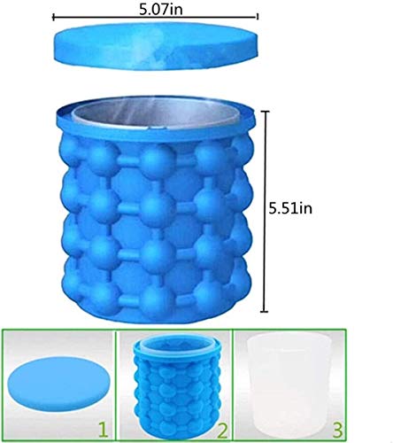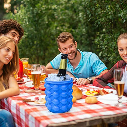 Spaceshoop - CLIng Large 2 in 1 Silicone Ice Bucket & Ice Mold with lid,Silicon Ice Cube Maker Genie, Portable Silicon Ice Cube Maker (Blue)