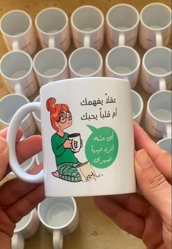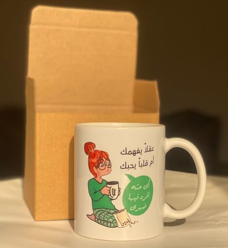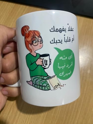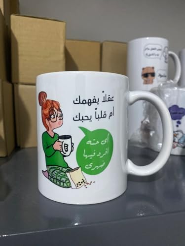 Generic - مج سيراميك بطبعة كوميك مطبوع عليه عبارة (عقلا يفهمك ام قلبا يحبك .. اى حتة افرد فيها ضهرى) باللغة العربية coffee mug