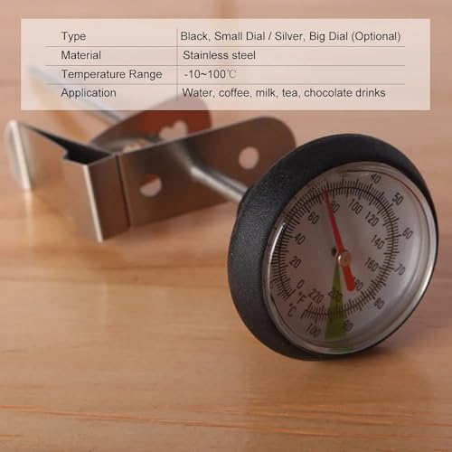 - سيساعدك ميزان حرارة الحليب على الوصول إلى درجة الحرارة المثالية للكابتشينو واللاتيه والشوكولاتة الساخنة. احصل على رأس حليب رغوة على الكابتشينو في كل مرة. لا مزيد من التخمين، لا مزيد من حرق الحليب. مشبك قابل للتعديل للقراءة بدون استخدام اليدين، يمكن استخدام هذه الأداة العملية أيضًا للتحقق من درجة حرارة اللحم المشوي والحساء والتعريف العميق وما إلى ذلك