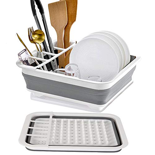 newox - Collapsible Dish Drying Rack with Drainer Board, Portable Dinnerware Organizer - Space Saving Folding Dish and Cutlery Drainer for Kitchen (Grey)