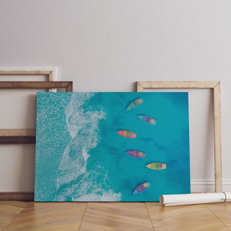 Home Gallery - لوحة حائط قماشية ملونة بتصميم قوارب في البحر في الصباح الباكر، 120×80