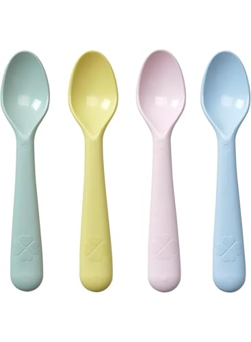 generic - طقم ملاعق بلاستيكية ملونة من 4 قطع امنة للاطفال والكبار