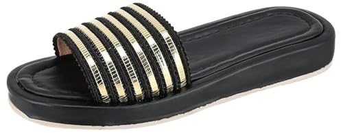 MADYOS - comfortable 2 cm wedged sole with a glitter x p.u striped strap Blac x gold, 38 EU