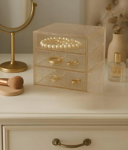 - Its transparent acrylic construction enables quick visual identification of contents, eliminating the need to open drawers and saving valuable time during morning routines.