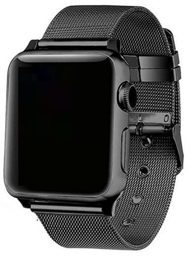 Generic - Compatible with Apple Watch Women Men Stainless Steel Strap with Metal Buckle Compatible with iWatch Series 8 & 8 Ultra (Silver, 45mm/49mm) (Black)