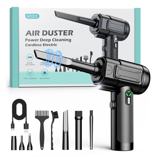 RELIDOL - منفاخ هواء كهربائي: 100000 دورة في الدقيقة مع إضاءة ليد، صغير قابل لإعادة الشحن ولاسلكي لتنظيف لوحة المفاتيح، منفاخ نفاث - مجموعة تنظيف للسيارة والكمبيوتر والمنزل، بديل لعلب الهواء المضغوط