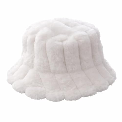 Generic - قبعة باكيت شتوية من الفرو المضلع، أبيض، فرو صناعي فاخر، دافئة