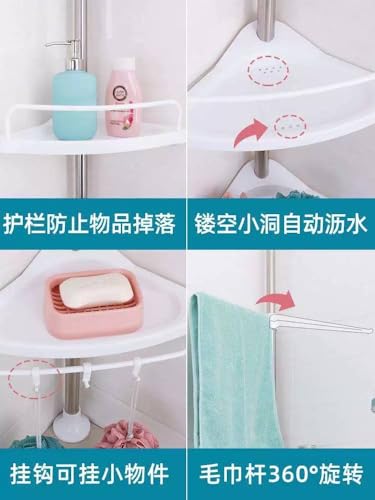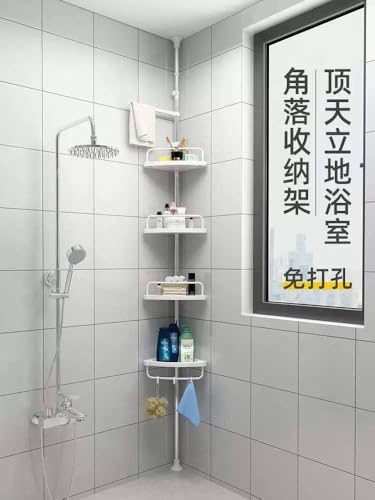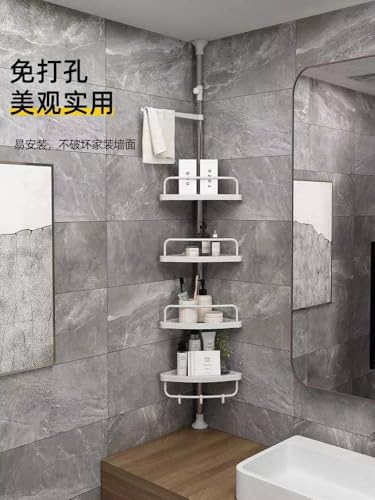 Generic - ركنة حمام 4 دور مع حامل فوط – قوائم وأرفف بلاستيك متين – قابل للتمدد والتثبيت بدون مسامير – ارتفاع 320 سم وتحمل حتى 16 كجم