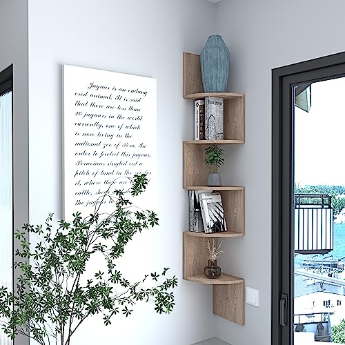 Arreditaly - Corner Bookcase 5 Shelves Melamine Wood Wall Shelves Display Shelves Modern Elegant Minimal Design for Home Furnishings Living Room Study Living Room Bedroom 123 x 20 x 20 cm (Oak)