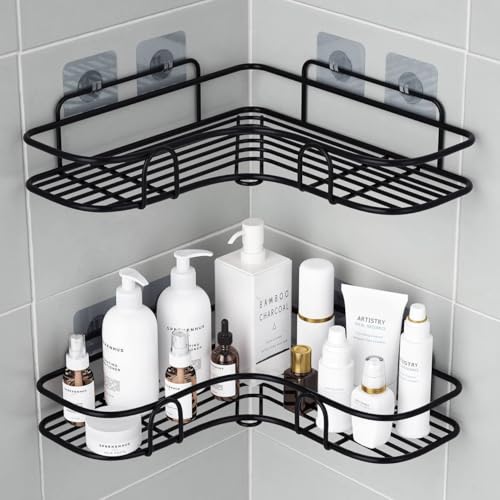 • DURABLE METAL CONSTRUCTION: Crafted from high-quality metal with a premium black coating finish, this corner caddy offers exceptional durability and a modern aesthetic that complements any bathroom or kitchen décor