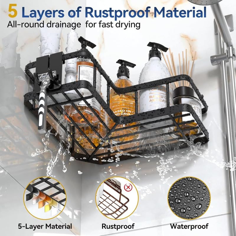 Generic - Corner Shower Caddy Organizer Set, 5-Pack with 12 Hooks in Black, Rustproof Storage for No-Drilling Installation, Large Bathroom Countertop and Home Decor Shelving System - Black