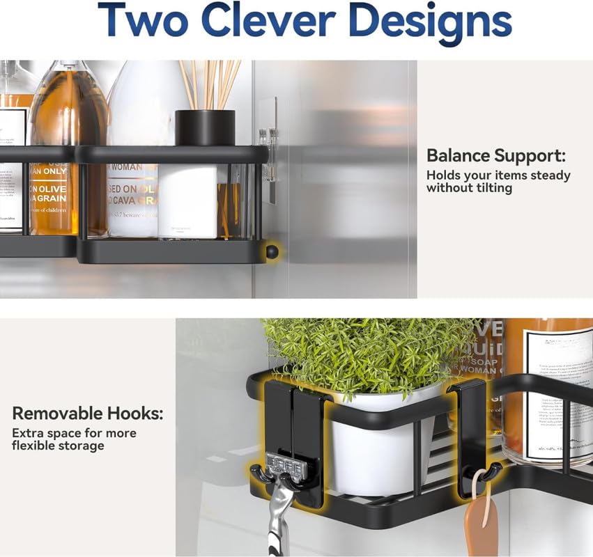 - Dual Installation Options: Enjoy ultimate flexibility with two ways to install. Mount the shelves inside your shower using the powerful, no-drilling adhesive for a secure, wall-mounted caddy, or use them as a freestanding, multi-tier organizer on your bathroom countertop or vanity for easy access to your products.