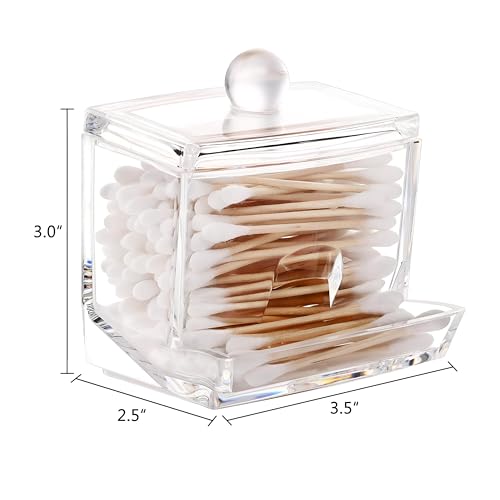 - At 3.54 x 2.99 x 3.07 inches (9 x 7.6 x 7.8 cm), this acrylic container is designed to increase storage space while reducing space usage. Its compact size allows them to sit smoothly on bathroom tables, dressing tables, or even in drawers, making them a versatile addition to your bathroom accessories. Thoughtful design ensures that it can hold a variety of items without taking up too much space.