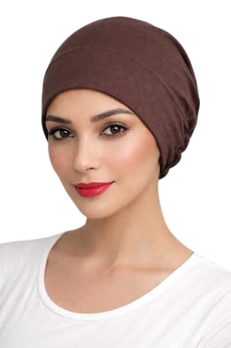 Generic - طاقية داخلية للحجاب من القطن، لون بني، قبعة كاملة التغطية، طاقية داخلية برباط خلفي بأستك.