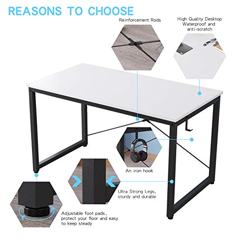 COTUBLR - كوتوبلر مكتب كتابة للمنزل والمكتب، مكتب كمبيوتر سوهو، طاولة لابتوب بتصميم عصري بسيط، محطة عمل مع قضيب تقوية على شكل حرف X (47 انش، ابيض بلوط)