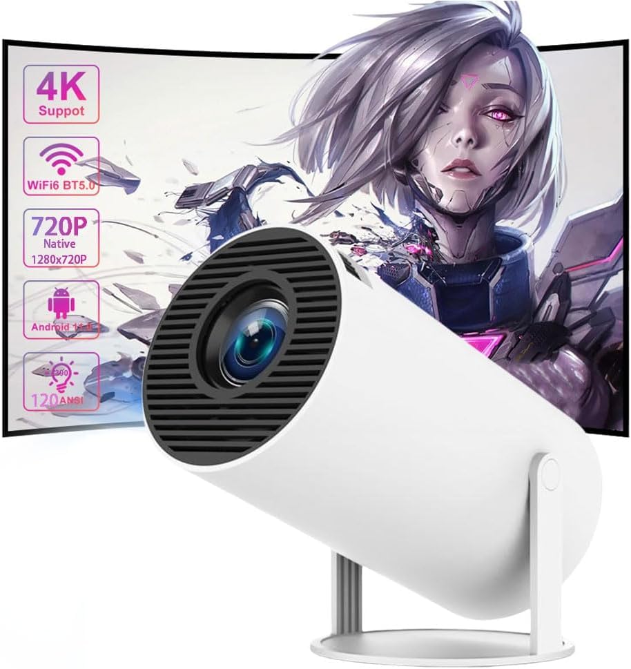 coverzone - coverzone HY300 Pro Mini Projector with Android 11.0, Wifi 6 & BT5.0, Home Theater, Auto Keystone, 180° White