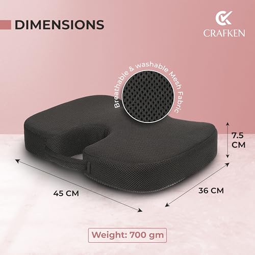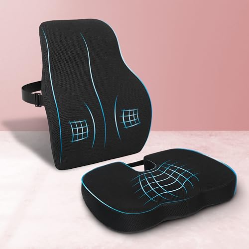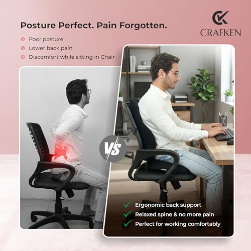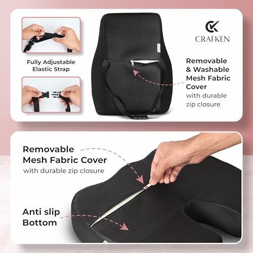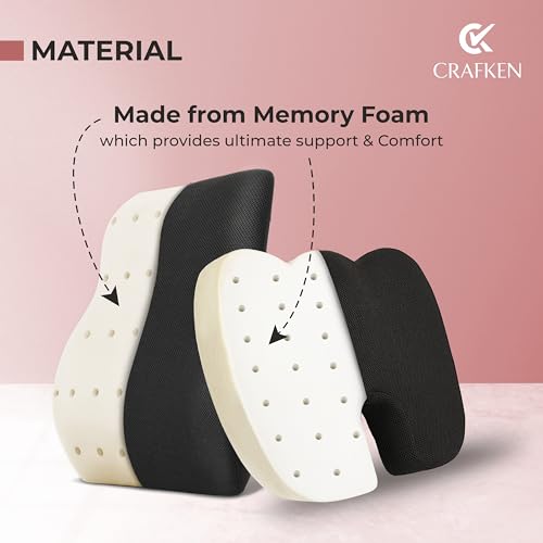 CRAFKEN - مجموعة وسادة مقعد ومسند ظهر من كرافكين، وسائد مقعد العصعص لكراسي المكتب، مسند ظهر لدعم اسفل الظهر لتخفيف الام الظهر وتخفيف الام الجزء العلوي والسفلي من الظهر، مناسبة لجميع الكراسي
