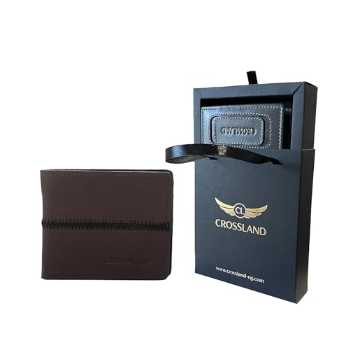 Crossland - محفظة من كروسلاند مصنوعة من جلد PU للرجال، بتصميم كلاسيكي باللون البني، مع 6 فتحات للبطاقات