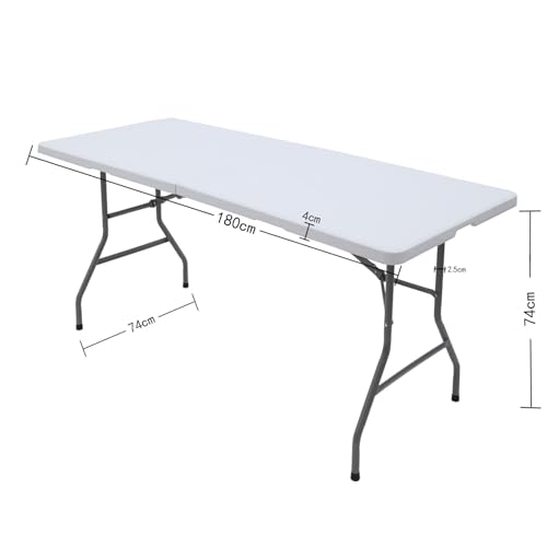 Cunsieun - طاولة قابلة للطي من كونسيون تخييم 180 × 74 سم للحديقة والنزهات والشرفة | متعددة الوظائف تتسع لـ 8 اشخاص | ابيض | مع مقبض حمل