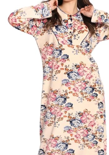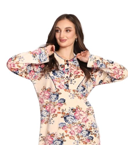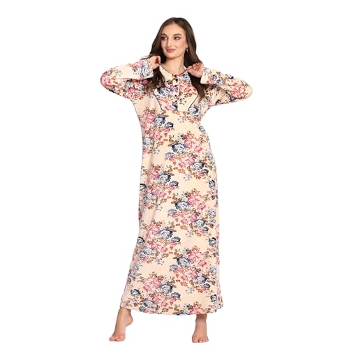 Dadoush - فستان طويل بأكمام طويلة ، - قميص نوم حريمي شتوي من دعدوش بتصميم الزهور - عباية حريمي من المخمل الليكرا - جلابية للنساء شتوية