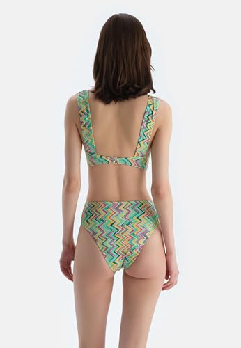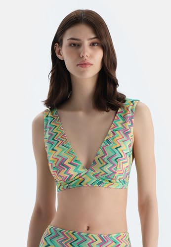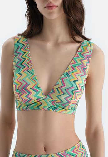 Dagi - بيكيني علوي مثلث عريض غير سلكي من داجي 25SW82013ST من مجموعة سوبر سيرفر بنمط هندسي مع بطانة قابلة للازالة وحزام ثابت، مقاس