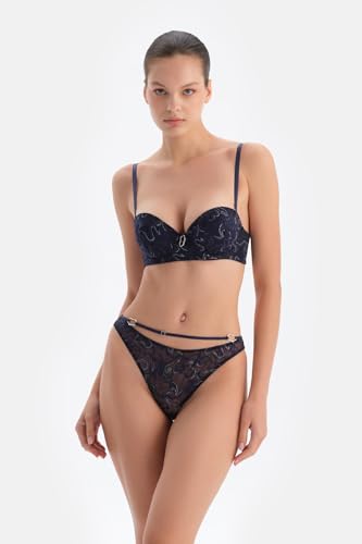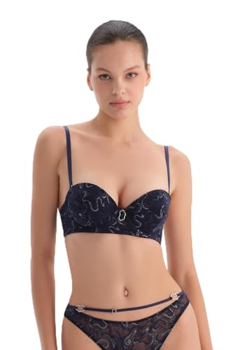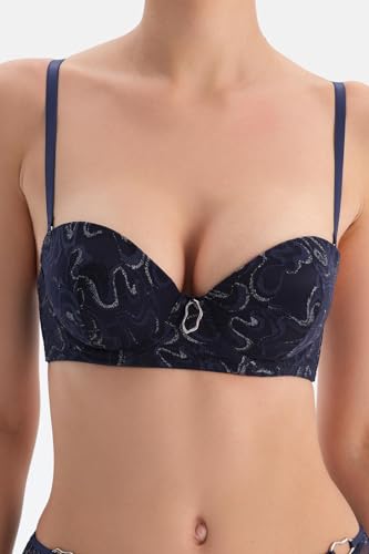 Dagi - DAGI Women's Strapless Push-up Bra, Push-up, Thin-Removable Strap, Geometric Patterned, Underwire, Lace, Navy