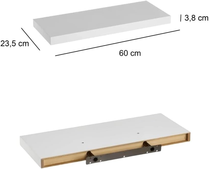 - 🌿 ORGANIZATION & STYLE AT YOUR HOME - DAMDAM GO Floating Wall Shelf in White is the perfect solution to add a touch of elegance and functionality to any room. With dimensions of 60 x 23.5 cm, this shelf is ideal for living rooms, kitchens and bedrooms, offering a practical and decorative space to display your favourite items.