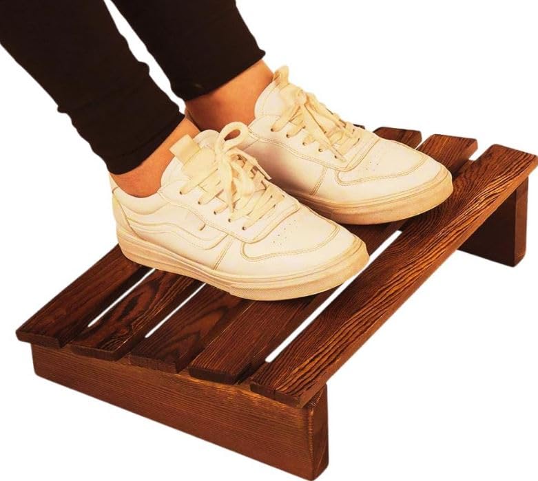 - Home Office Underneath Footrest with Wood Finish Rustic Brown for More Comfortable Sitting
