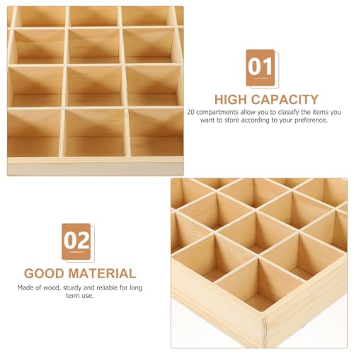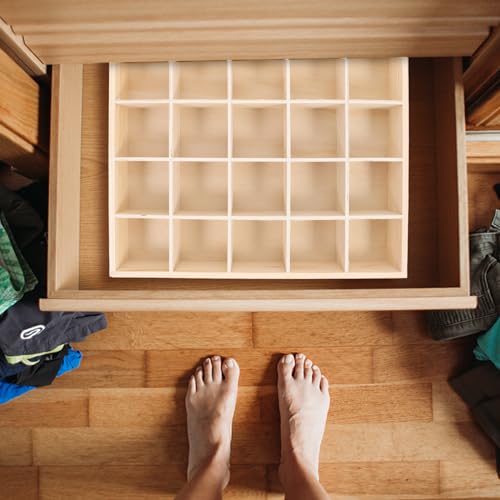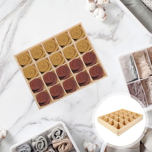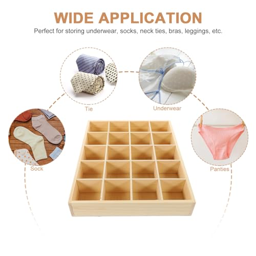 DEARMAMY - 1Pack Sock Drawer Organizer Underwear Drawer Organizer Panty Organizer 20 Cell Drawer Divider Storage Boxes Wooden Storage Box for Clothes, Socks, Lingerie, Underwear, Ties