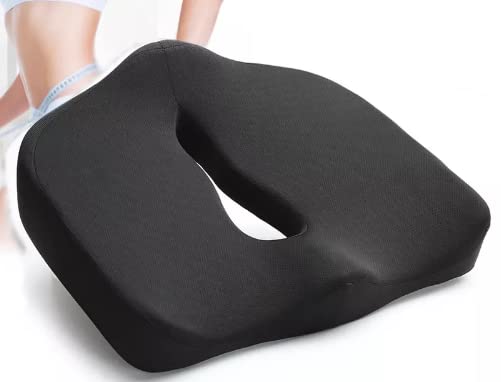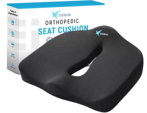 DEBIK - وسادة مقعد لكرسي المكتب من ديبيك مصنوعة من اسفنج ميموري فوم لعظم العصعص وعرق النسا وتخفيف الام اسفل الظهر - مصحح وضعية السيارة والكرسي المتحرك والكمبيوتر وكرسي المكتب (اسود)