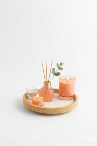 - مجموعة كاملة: تتضمن مجموعة العلاج العطري الأنيقة موزع روائح القصب مع عصي الخيزران، و3 شموع معطرة بأحجام مختلفة، وصينية عرض خشبية أنيقة