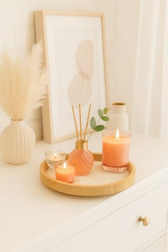 Generic - مجموعة ديكور للعلاج العطري مع موزع روائح القصب، شموع معطرة، صينية خشبية، ذهبي وردي وزجاج، ديكور للمنزل والمنتجعات الصحية