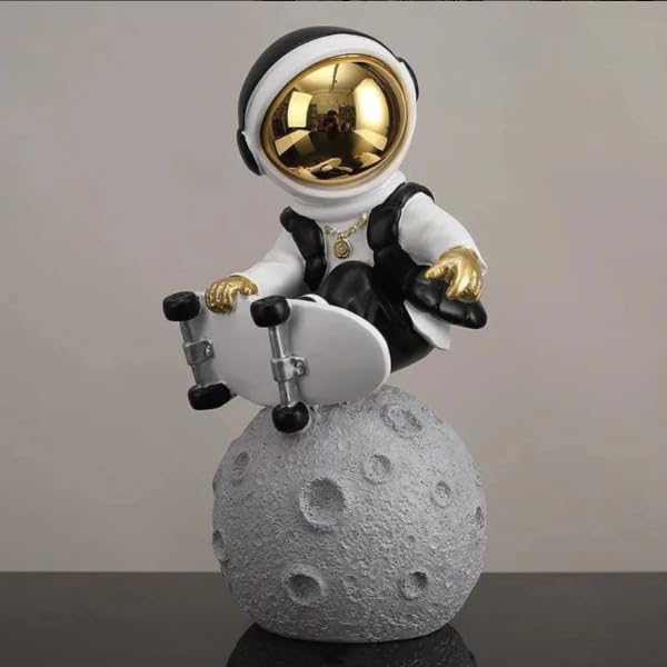 Generic - Decorative Astronaut Figurine on Moon Surface, Gold Visor, Black and White Suit, Space-themed Home Decor