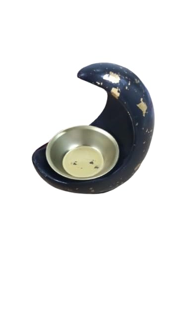 - ELEGANT DESIGN: Crescent moon-shaped ceramic incense holder in navy blue with decorative gold fleck accents, perfect for modern home décor